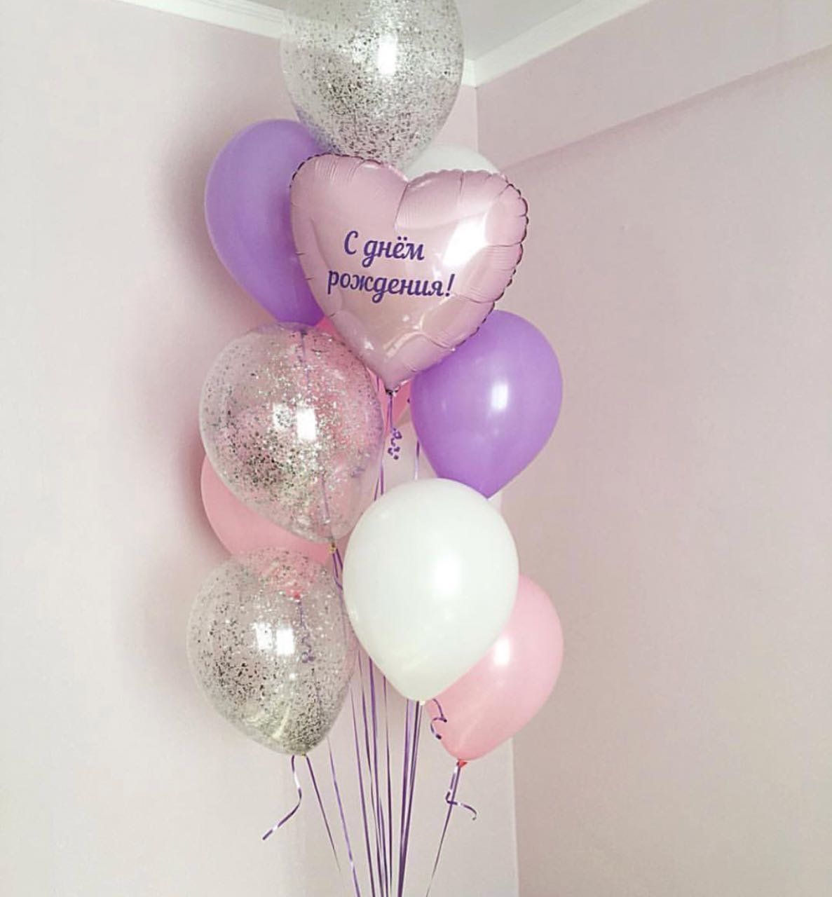 - 8 шариков пастель (нежно-розовый / белый / сиреневый)