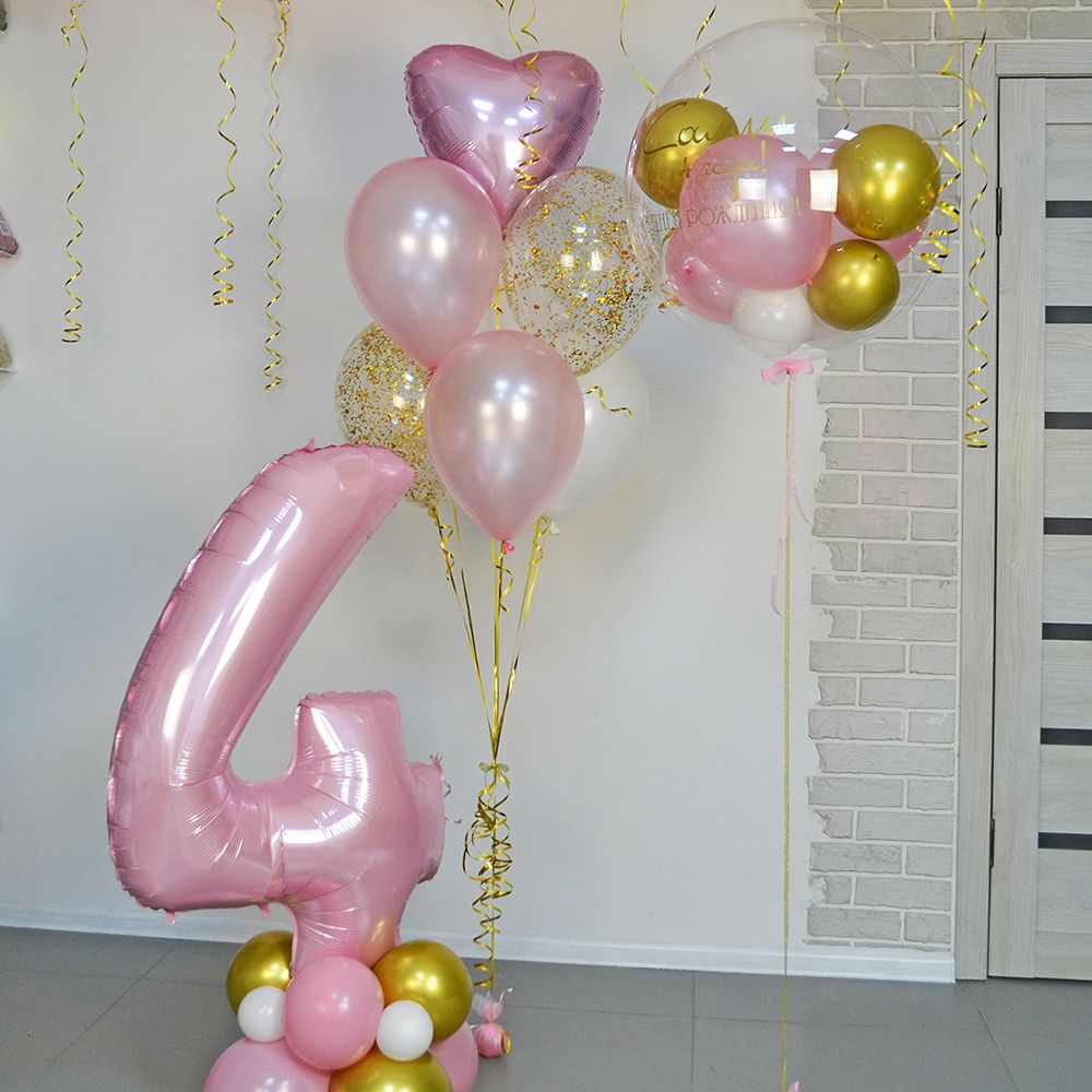 - фонтан из 7 шаров (1 сердечко, 2 шарика с конфетти, 4 перламутровых)