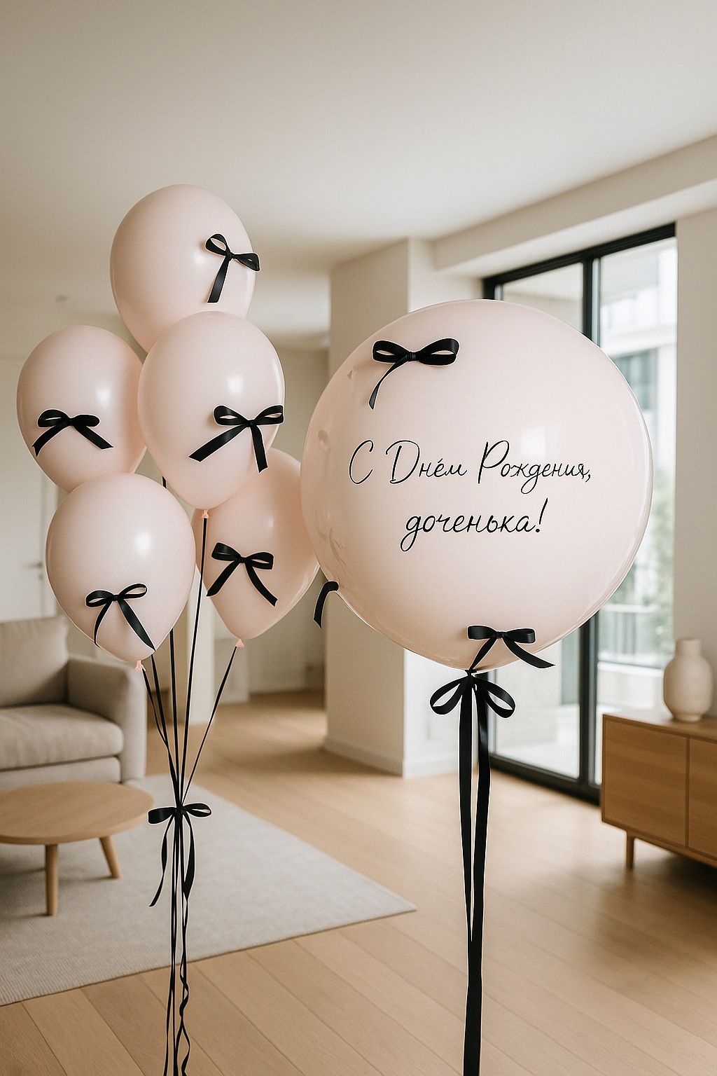 - Большой шар с бантикамии надписями;