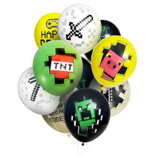 Воздушные шары с рисунками из компьютерной игры майнкрафт.