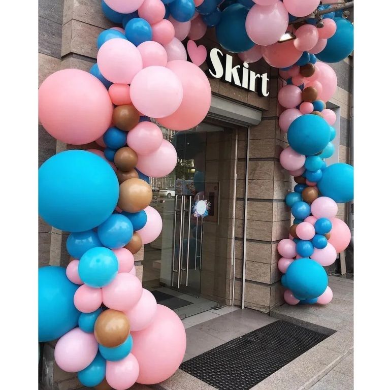 Гирлянды разнокалиберные, из воздушных шаров разных цветов и разных размеров. Стоимость оформления 1400 рублей погонный метр. Для более детального расчета цены обращайтесь к оператору.