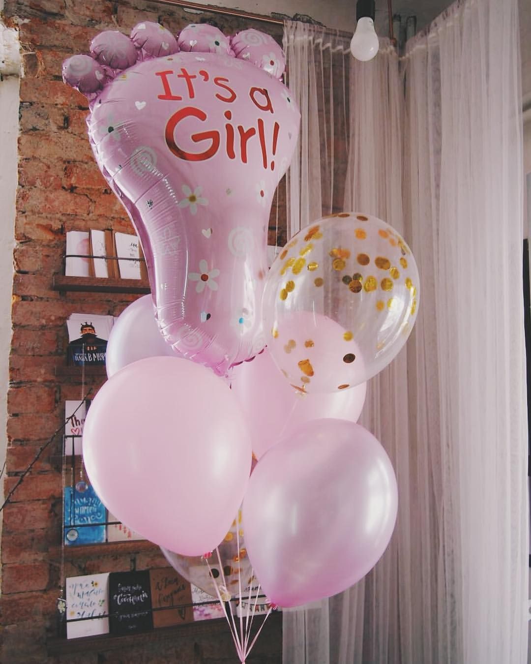 - 1 фольгированный шарик "ножка" (для девочки розовый, для мальчика голубой)