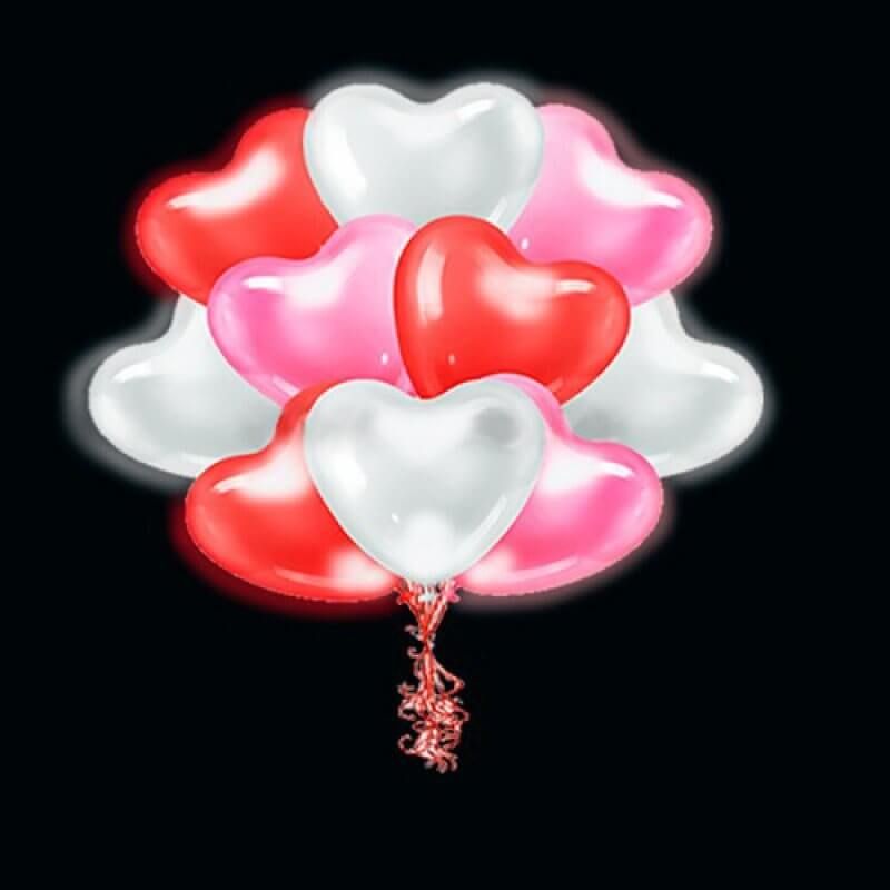 Фонтан из 10 светящихся сердец. Красный / розовый / белый.